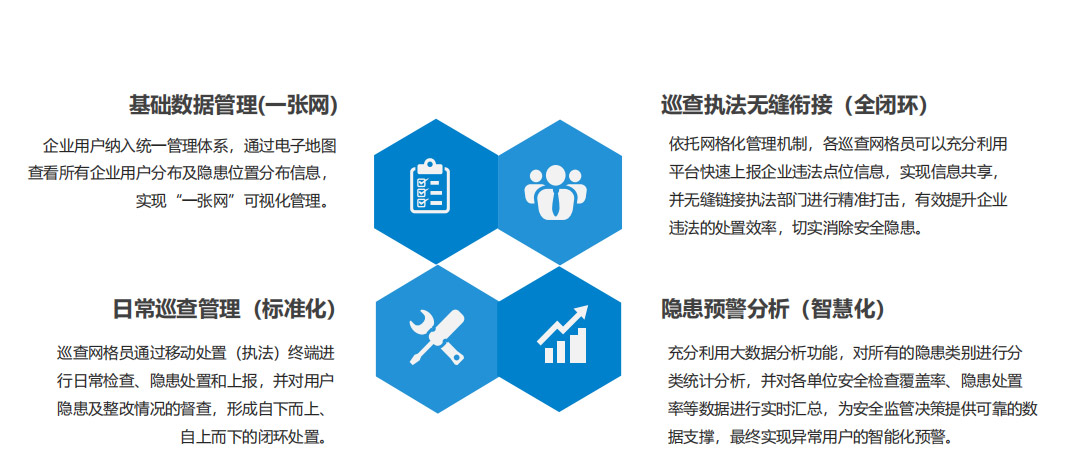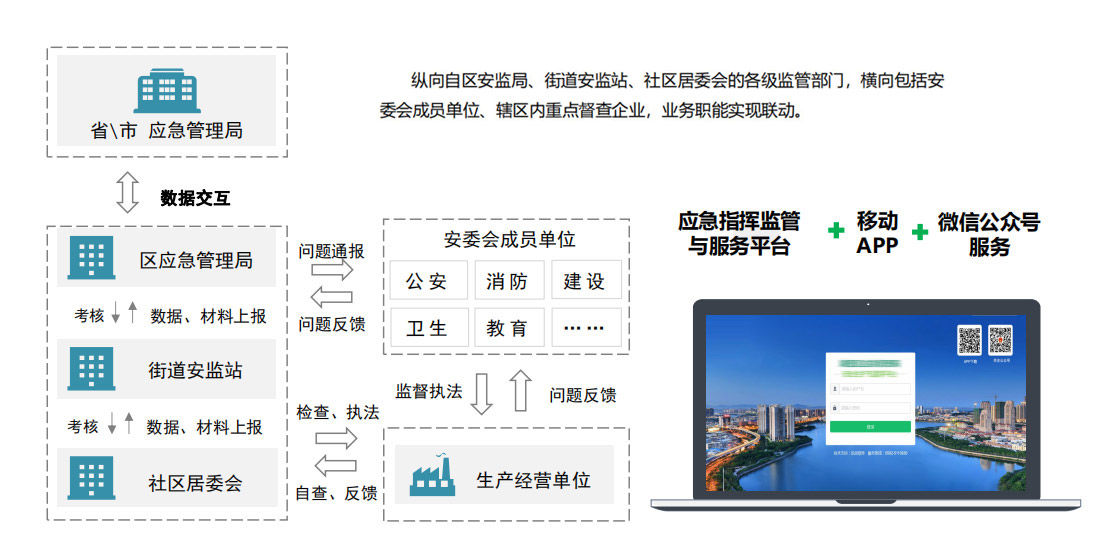 縱向自(zì)區(qū)安監局、街(jiē)道(dào)安監站≈πσ (zhàn)、社區(qū)居委會(huì)的(de)各級監管↑♠₹₽部門(mén),橫向包括安 委會(huì)成員(yuán)單 <Ωλ位、轄區(qū)內(nèi)重點督查企業(yè),業(y '>è)務職能(néng)實現(xiàn)聯動♣ε∞。